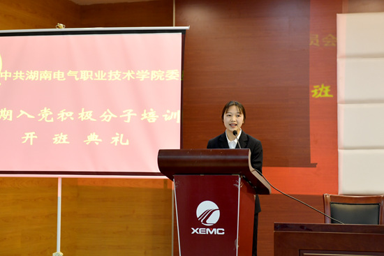 刘玉雪同学作为新学员代表发言,她表示,今后将更加严格要求自己,以一名共产党员的标准要求自我,在学习、工作、生活上追求进步。她代表培训班成员郑重承诺:认真对待培训,严格遵守纪律;珍惜学习机会,认真学习理论;提高思想觉悟,端正入党动机。